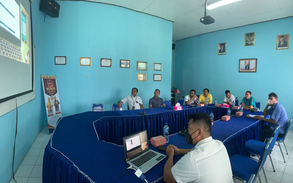 Pangkalan Bun, PERUMDAM TIRTA ARUT – Para Peserta Studi Banding (Comparative Study) PDAM Kabupaten Lamandau beserta tim Perumda Air Minum Tirta Arut yang sedang menonton profil Perumda Air Minum Tirta Arut.